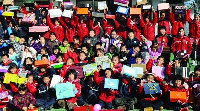 ????“鞋盒禮物”,在全世界100多個(gè)國(guó)家都舉辦過(guò),本著互動(dòng)、打破雙方隔閡的理念,倡導(dǎo)富裕家庭的孩子們自愿捐出自己的零用錢(qián),和爸爸媽媽們一起為需要的孩子們準(zhǔn)備禮物,并用鞋盒包裝起來(lái)送給困難家庭的孩子。在七橋小學(xué)的操場(chǎng)上,高高的一摞精心打扮過(guò)的“鞋盒禮物”堆在孩子們面前,有的還用水彩筆歪歪扭扭地寫(xiě)著贈(zèng)送祝語(yǔ)。這些都是南京市40多所中小學(xué)孩子準(zhǔn)備的一部分。