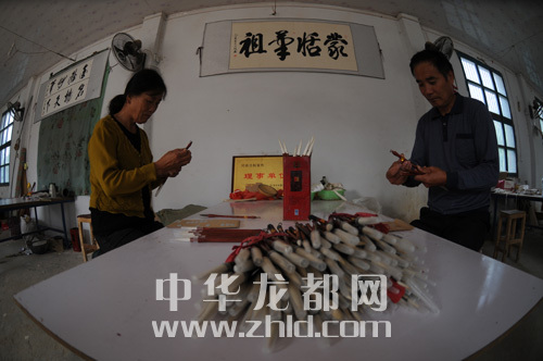 工人制作汝陽劉毛筆
