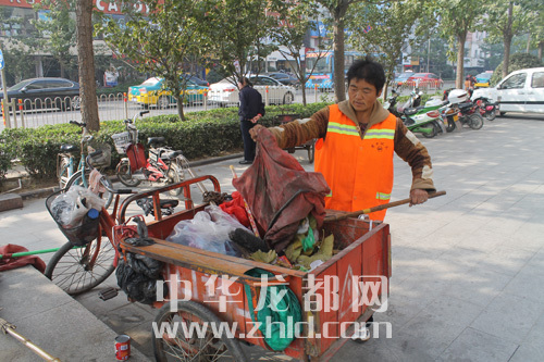 ????七一路是周口市區(qū)的窗口路段,也是環(huán)衛(wèi)工作責(zé)任最重的路段,為此,市環(huán)衛(wèi)處把李二華派到了這一路段。10月24日9時(shí)許,記者在該路段見到了正在清掃路面的環(huán)衛(wèi)工李二華。