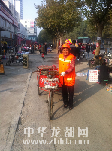????由于周口荷花市場北門附近有幾家經(jīng)營服飾的大型賣場和許多經(jīng)營各色小吃的店鋪,因而這里極具人氣。據(jù)說,每天從此北門經(jīng)過的市民超過10萬人。人一多,地面的衛(wèi)生狀況自然不容樂觀。“平時(shí),我們是‘一班一人’清掃,但是到了節(jié)假日,人流量往往是平時(shí)的幾倍,垃圾量自然增多,我會(huì)和另外一位同事分頭打掃。”王霞軒說。