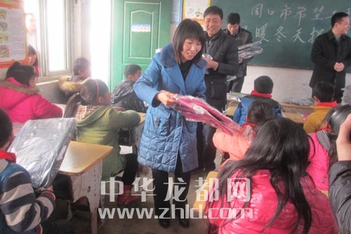 ???????2月3日,共青團項城市委在該市開展了“關(guān)愛留守兒童”溫暖冬日活動,志愿者把圍巾、帽子、書包等愛心物品送給蓮花辦事處徐樓行政村的留守兒童,為他們送去溫暖和關(guān)愛?! ⊥韴笥浾?金月全 攝 線索提供 張紀(jì)友