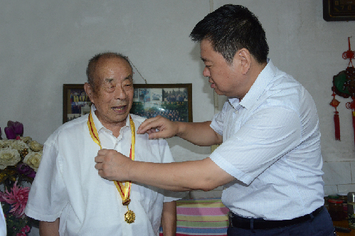 ????劉繼標(biāo)先后看望了抗戰(zhàn)老戰(zhàn)士王洪蟠、王彥林、代士清、王景明,親手為他們佩戴中共中央、國務(wù)院、中共軍委聯(lián)合頒發(fā)的中國人民抗日戰(zhàn)爭70周年紀(jì)念章。