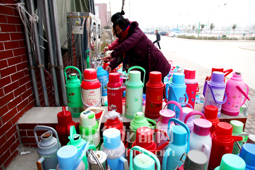 ????本報(bào)訊 這個(gè)冬天雖然寒冷,但在鄲城縣一高校園超市門口熱水器旁卻始終暖意融融。帶來(lái)暖意的除了熱氣騰騰的開(kāi)水,還有幾位超市阿姨的愛(ài)心舉動(dòng)。原來(lái),超市員工蘇玉環(huán)、薛玉玲等人在這個(gè)冬天一直幫學(xué)生們接熱水(如上圖)。她們的善意舉動(dòng)不僅免去了學(xué)生們排隊(duì)打水的辛苦,還避免了學(xué)生們接水燙傷的危險(xiǎn)。