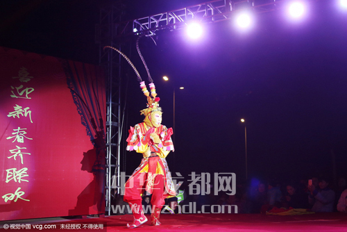????還記得小時(shí)候我們搬著小板凳到村頭看電影或聽?wèi)騿??如今啊,農(nóng)民不再看電影聽?wèi)蛄耍情_始在村頭辦“村晚”啦。2月2日晚上,太康縣老冢鎮(zhèn)孟莊行政村舉辦了一臺猴年“村晚”。演出現(xiàn)場震天的鼓點(diǎn)和著嗩吶的節(jié)拍,熱鬧非凡。英俊的公子、羞怯的大家閨秀,神采奕奕的大爺大媽,一個(gè)個(gè)生動(dòng)的角色,一段段幽默詼諧的節(jié)目,吸引著附近數(shù)十個(gè)村的兩萬余名村民在此觀看。