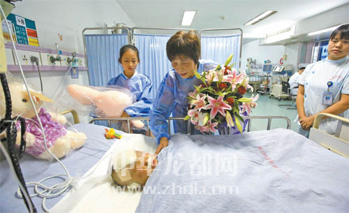????11日下午3時,溫州醫(yī)科大學附屬第二醫(yī)院方面就童童的病情做了通報:手術(shù)后,童童頭部等處傷勢已有好轉(zhuǎn),右手無名指的血液循環(huán)也恢復良好。童童體溫正常,心率穩(wěn)定,呼吸平穩(wěn),目前病情基本穩(wěn)定,如果能平穩(wěn)度過72小時,就將進入恢復期。