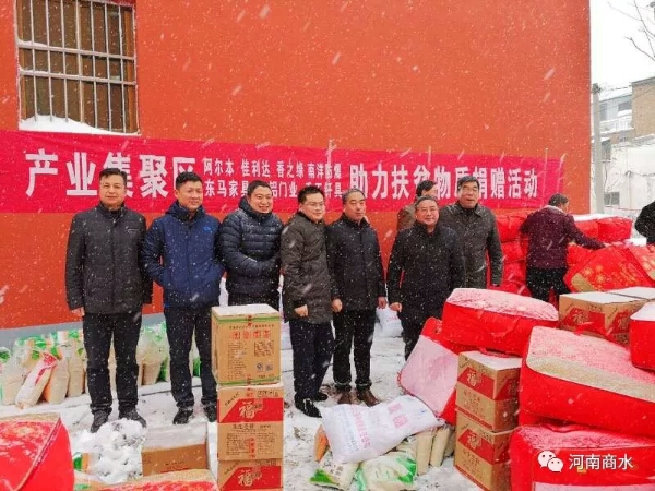 “我們將一如既往地關(guān)注和支持精準(zhǔn)扶貧工作,用實(shí)際行動展現(xiàn)企業(yè)家致富不忘本、積極履行社會責(zé)任的良好形象?!?月4日上午,河南阿爾本制衣有限公司等企業(yè)負(fù)責(zé)人深入到張莊鄉(xiāng)大姜樓、雙廟、李寨、河灣等村的困難戶家中,為他們送去慰問金以及米面糧油、棉被等過冬物質(zhì)。大雪來臨之后,全縣越來越多的企業(yè)加入到脫貧攻堅(jiān)送溫暖活動中來,周口市佳利達(dá)紡織有限公司、河南香之緣農(nóng)業(yè)發(fā)展有限公司、河南省南洋防爆電機(jī)有限公司、河南東馬家居有限公司、河南豪鋁門業(yè)有限公司、河南千王釬具有限責(zé)任公司等更是體現(xiàn)出大愛無邊的擔(dān)當(dāng)意識、責(zé)任意識,用實(shí)際行動為貧困家庭送去一股股暖流。 風(fēng)雪阻擋不住商水脫貧攻堅(jiān)的決心和腳步。據(jù)不完全統(tǒng)計(jì),元旦以來,商水縣有3000多名縣鄉(xiāng)干部、駐村隊(duì)員、愛心企業(yè)家參與到扶貧攻堅(jiān)送溫暖活動中來。新一輪的“大慰問、大宣傳、大落實(shí)”活動正在展來,更多的貧困家庭將切實(shí)感受到黨和政府的溫暖。