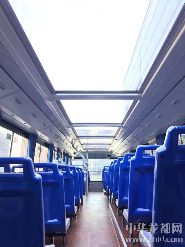 記者順著步梯來到第二層,視野頓時(shí)開闊起來。原來該層頂部設(shè)計(jì)有6塊全景天窗,乘客坐在第二層不但不會(huì)有壓抑的感覺,反而會(huì)視野開闊,便于游覽周口街景。記者注意到,在全景天窗下面有遮陽板,乘客可以用來遮擋陽光。