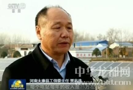 “塘上發(fā)電、塘下養(yǎng)魚。在河南太康縣劉寨村,原來廢棄的水塘不僅重新養(yǎng)上了魚,還又建了光伏太陽能發(fā)電設(shè)備。貧困戶劉宗林告訴記者,現(xiàn)在不僅用電不花錢,每年還有一定的分紅?!碑斖淼男侣劼?lián)播畫面中,開始就提到了太康縣老冢鎮(zhèn)劉寨村的發(fā)電項目。在長達1分41秒的報道中,介紹太康縣的內(nèi)容占了1分多鐘。