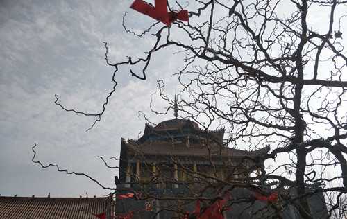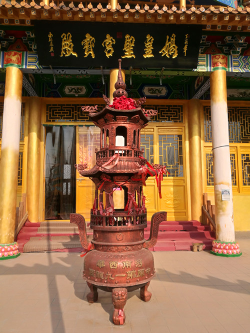 站在昆山女媧宮前向南看,一座高大宏偉的建筑物映入記者眼簾,由于它坐北朝南,我們只能看到它的背影。趙俊明告訴我們,那棟建筑物也是一座敬奉女媧娘娘的大殿,叫做媧皇圣宮寶殿。它是由一位女香客自發(fā)捐資修建的,這座氣派的大殿從無(wú)到有、從小到大整整用了14年時(shí)間,花費(fèi)近千萬(wàn)元。