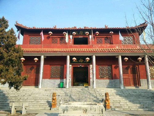 在西華這片古老又神秘的土地探尋盤古女媧創(chuàng)世文化,自然少不了拜謁昆山女媧宮。這座宮殿位于西華縣昆山辦事處山子頭村,因?yàn)閭髡f(shuō)這里是女媧的居住地,所以在西華人心目中有著不可替代的地位。2018年元旦前夕,我們驅(qū)車前往,進(jìn)入山子頭村一路西行直達(dá)盡頭,女媧宮就赫然于眼前了。待記者在宮門前站定,不經(jīng)意回望來(lái)路,竟發(fā)現(xiàn)眼前是一條坡度明顯的下坡路。見記者詫異,一旁的村民笑著說(shuō):“山子頭嘛,就是說(shuō)這里是山嶺的頭兒,女媧宮就在最頂上。”