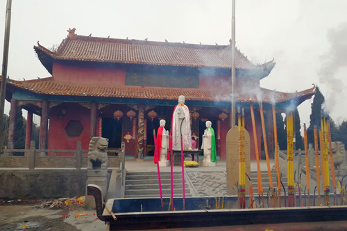 站在殿內(nèi)祭拜的“善童”(民間稱呼,即虔誠(chéng)的香客)張新蘭以她的親身經(jīng)歷印證了趙俊明的話。今年75歲的張新蘭是西華縣紅花鎮(zhèn)人,她經(jīng)常到昆山女媧宮敬奉女媧娘娘。“我記得很清楚,1993年陰歷三月初九昆山女媧宮大殿奠基,當(dāng)天我就在現(xiàn)場(chǎng),我們這些‘善童’都自發(fā)捐物捐錢,我還從家里拿木料過(guò)來(lái)捐到殿里?!睆埿绿m說(shuō)。