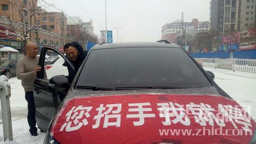 趙明禮個(gè)子不高,留著光頭,說起話來滿臉笑容。他說自己是一家汽車快修店的老板,1月24日下午下雪后,店里就沒有了生意。他覺得閑來無事,看到路上行人打車難、出行難,就萌生了開私家車免費(fèi)接送市民的想法。