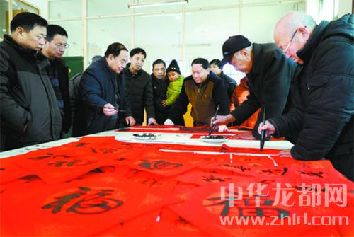 春節(jié)臨近,書法愛好者走進(jìn)鄉(xiāng)村,開展“迎新春 送春聯(lián)”活動(dòng),給父老鄉(xiāng)親送上新春祝福。王曉 攝