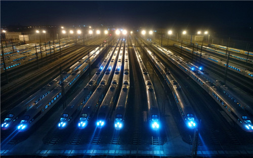 2月1日,動車組列車??吭谔旖騽榆嚳蛙嚩蝿榆囘\用所。