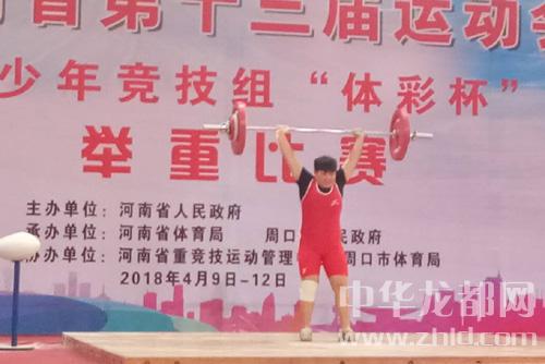 中華龍都訊(記者姬慧洋文/圖)4月9日下午,省十三運會青少年競技組舉重比賽女子乙組+69公斤級比賽在周口市體育中心開賽,來自全省的10位選手經過激烈角逐,17歲周口小將林翠愛以抓舉75公斤、挺舉95公斤,總成績170公斤的戰(zhàn)績,為周口代表隊再添一金。