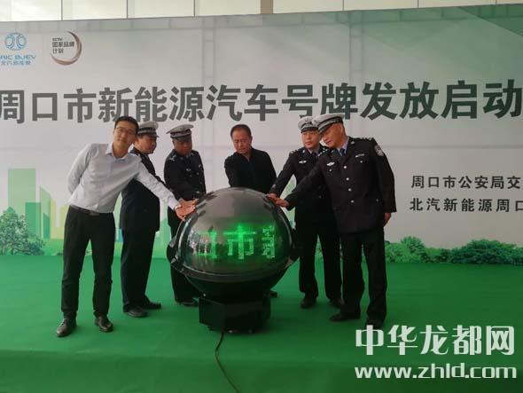 中華龍都網(wǎng)訊(周口報(bào)業(yè)全媒體記者 姬慧洋 陳永團(tuán) 文/圖)4月10日上午10時(shí),在市區(qū)太清路與昆侖路交叉口附近,我市新能源汽車號牌發(fā)放儀式啟動,在啟動儀式上周口市公安局交通管理支隊(duì)支隊(duì)長謝偉親手將“豫PD08887”這副新能源汽車號牌送到車主張磊的手中。據(jù)介紹,為了能夠盡早選到自己心儀的號牌,家住市區(qū)漢陽路附近的張磊一大早就趕到了位于建設(shè)大道與周口大道交叉口周口幼師北門附近的萬達(dá)便民服務(wù)站,在現(xiàn)場通過“50選1”的號牌選擇方式,喜獲自己心儀的號牌。