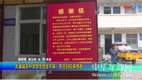 2月14日,袁偉強(qiáng)與同學(xué)一道上街玩。在太康縣清集鎮(zhèn)政府門口,袁偉強(qiáng)發(fā)現(xiàn)一個(gè)錢包。撿起一看,錢包里有一沓現(xiàn)金、銀行卡、身份證等物品。左思右想,袁偉強(qiáng)決定把錢包交給鎮(zhèn)政府工作人員。在清集鎮(zhèn)政府工作人員的幫助下,終于找到了失主劉永坤。拿到失而復(fù)得的錢包,劉永坤執(zhí)意要感謝袁偉強(qiáng),電話聯(lián)系了幾次,都被袁偉強(qiáng)拒絕。劉永坤心里總是過意不去,就寫了一封感謝信,制作了一面錦旗,送到袁偉強(qiáng)所在學(xué)校,表達(dá)自己的感激之情。
