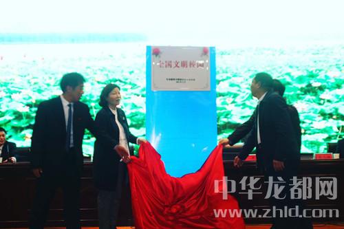中華龍都網(wǎng)訊 (周口報(bào)業(yè)全媒體記者 侯俊豫 通訊員 孫琳琳)4月24日,是淮陽(yáng)中學(xué)廣大師生難忘的日子。在學(xué)校報(bào)告廳召開的創(chuàng)建全國(guó)文明校園總結(jié)表彰大會(huì)上,市文明辦副主任劉成華,縣委常委、宣傳部長(zhǎng)謝留定,副縣長(zhǎng)薛燕和校長(zhǎng)高遠(yuǎn)征共同為該校成功創(chuàng)建“全國(guó)文明校園”揭牌。該校是我市首個(gè)獲此殊榮的學(xué)校。