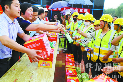 中華龍都網(wǎng)訊(周口報業(yè)全媒體記者 張勁松 蘇千 文/圖)“各級領導沒有忘記我們這些高溫下作業(yè)的農(nóng)民工,不僅對我們進行了安全知識培訓,還給我們送來了慰問品,我非常感謝他們?!鞭r(nóng)民工朱紅軍捧著香皂、花露水等防暑降溫用品,高興不已。