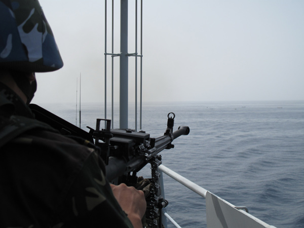 2009年3月8日,??谂炞o(hù)送著“菲律賓快運(yùn)”、“馬士基大西洋”、“西基諾斯”、“貴華”號四條商船,浩浩蕩蕩,一路向前。