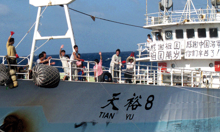 2009年2月8日下午,飽經(jīng)風(fēng)雨、銹跡斑斑的“天裕8號”進(jìn)入視野,航行在海口艦右前方,搖曳在風(fēng)浪中,猶如一個失散多年的孩子。
