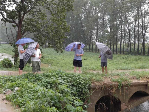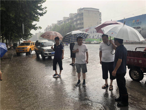 短時強降雨造成交通干渠水位暴漲,由此流入光明渠。城南辦事處書記韓少華放心不下,早早地就走上街頭,到重點地段檢查防洪排澇情況,安排人員進行排澇。
