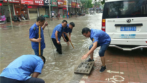 城市排澇保暢通。城管、交警等部門做好城市交通秩序和排澇工作。該縣《預(yù)案》特別對(duì)城市防汛提出詳細(xì)部署,特別是城管、交警在暴雨中從未停歇,一直在從事保暢通、疏堵排澇工作,許多市民感動(dòng)不已,并積極參與到排澇工作隊(duì)伍中來(lái)。