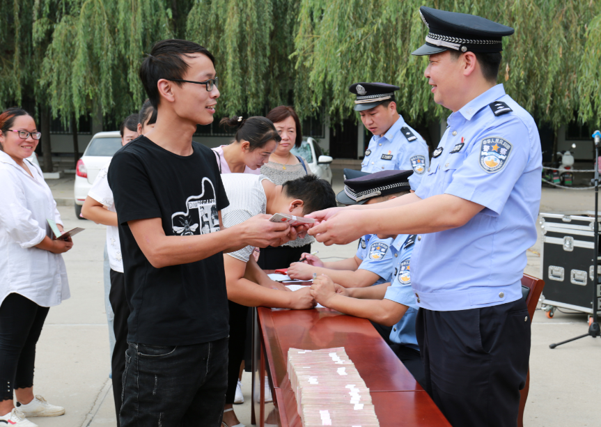 9月6日,扶溝縣公安局舉行公開退贓大會(huì),將“2·28”詐騙案追繳的56萬(wàn)元現(xiàn)金返還給受騙群眾。