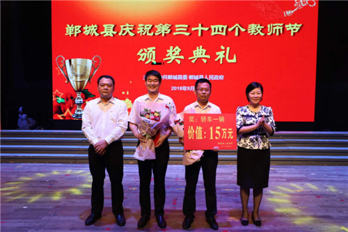 9月10日,鄲城縣舉行慶祝第34個教師節(jié)頒獎典禮,縣委書記羅文閣出席典禮并講話、縣長李全林致辭,縣領導姜永來、侯磊、吳青鋒、王智華、呂振龍、馬超、崔衛(wèi)華等出席頒獎典禮。