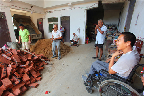 2014年8月14日,是商水縣袁老鄉(xiāng)朱屯村朱建舟一家心中永遠(yuǎn)的痛。在海南一處建筑工地上,朱建舟不慎從十層樓上摔了下來,造成下肢終生癱瘓。為治病,朱建舟不僅花光了家里所有的積蓄,還借了親戚朋友很多錢??粗浑p還不諳世事的兒女,朱建舟心里五味雜陳,陷入了深深的絕望之中。善良的妻子王五妮鼓勵他說,家里還有我,我們還有雙手,只要踏實能干,一樣能創(chuàng)造出幸福的生活。