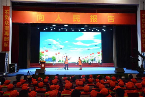 在當(dāng)天的會(huì)議上,全體與會(huì)人員首先集中觀看了短片《向人民報(bào)告》,詳細(xì)全面地總結(jié)回顧了“代人民管理城市”理念實(shí)施一年來的工作,對上年度民意調(diào)查結(jié)果和城市管理成果向人民進(jìn)行報(bào)告,對今年度的民意調(diào)查進(jìn)行分析研判,對下一步城市管理工作進(jìn)行了安排部署,并對城市管理先進(jìn)單位、環(huán)衛(wèi)工作先進(jìn)單位、優(yōu)秀環(huán)衛(wèi)工人、城市管理工作先進(jìn)個(gè)人進(jìn)行表彰。