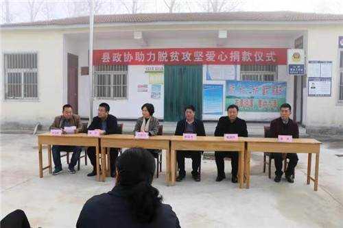 11月13日,在扶溝縣桐丘街道辦事處小胡行政村村委院內(nèi),縣政協(xié)副主席郝寶杰將市、縣政協(xié)委員們捐贈(zèng)的2萬(wàn)元錢(qián)交到小胡、東五村黨支部書(shū)記手中,也將政協(xié)委員對(duì)脫貧攻堅(jiān)事業(yè)的愛(ài)心傳導(dǎo)到貧困戶(hù)的心中。