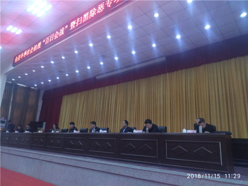 11月15日上午,鹿邑縣在縣委黨校一樓報(bào)告廳召開全縣冬季社會治安“百日會戰(zhàn)”暨掃黑除惡專項(xiàng)斗爭推進(jìn)會。會議對全縣冬委社會治理“百日會戰(zhàn)”第一次工作以及全縣掃黑除惡專項(xiàng)斗爭第五次工作進(jìn)行通報(bào);縣領(lǐng)導(dǎo)梁建松、侯自峰、王曉征、何新敏、齊梅英、魯建軍等出席會議。縣直各局委、各鄉(xiāng)鎮(zhèn)辦事處主要負(fù)責(zé)人、綜治辦主任和各基層派出所長、司法所長以及來自公安、檢察、法院、司法戰(zhàn)線的干警近千人參加會議。