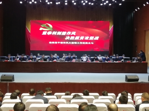 縣委書記馬明超出席會議并講話,縣長王毅主持會議,縣委副書記、政法委書記岳新坦宣讀干部作風大整頓督查通報,副縣長王汝凌作迎接貧困縣退出市級初審評估檢查工作動員講話,作風大整頓被通報單位負責人作表態(tài)發(fā)言。