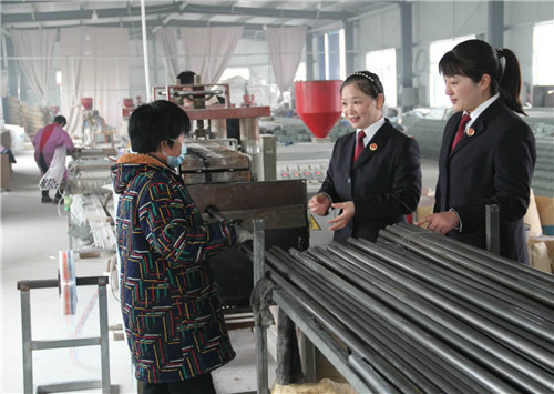 1月8日,扶溝縣檢察院幫扶干警來到固城鄉(xiāng)大王村扶貧車間,向正在加工窗簾杠的村民征求對扶貧工作的意見和建議。