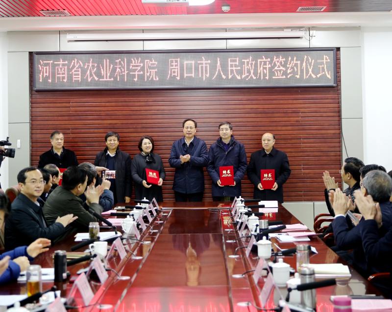 1月9日,河南省農(nóng)業(yè)科學(xué)院與周口市人民政府簽訂全面戰(zhàn)略合作協(xié)議暨河南省農(nóng)業(yè)科學(xué)院鄲城分院揭牌儀式在鄲城舉行,中國工程院院士、省農(nóng)科院院長(zhǎng)張新友,省農(nóng)科院副院長(zhǎng)衛(wèi)文星,副市長(zhǎng)張廣東,以及鄲城縣委書記羅文閣、縣長(zhǎng)李全林等相關(guān)負(fù)責(zé)同志參加儀式。