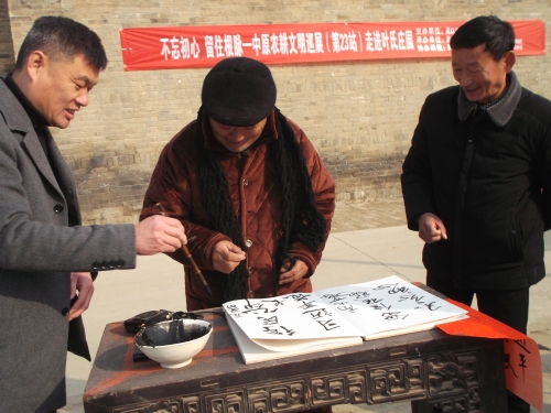 鄧城鎮(zhèn)范莊村72歲的范長印老人觀展后感觸頗深地說:“這些展品我很多都見過、用過,不過用起來真費勁真受罪??!現(xiàn)在農(nóng)忙季節(jié)機器一響,糧食嘩啦啦就進家了。我這個年齡的人最能體會到咱們國家的進步和社會的美好!”隨后,老人在留言薄上用握慣農(nóng)具的粗糙大手握起毛筆寫下了“新時代,得民心”幾個字。字雖不工整但他的滿腔真情感動了在場的群眾,大家把熱烈的掌聲送給范長印老人。