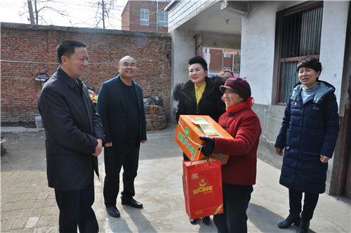 當日上午,愛心企業(yè)商水建業(yè)為500個家庭送來了米面油等過年物質,河南省越調劇團為農民帶來精彩的戲曲演出,剛剛參加全省“紅色文藝輕騎兵”慰問演出回到周口的申小梅女士為村民表演了群眾耳熟能詳?shù)摹妒战獋ァ愤x段。