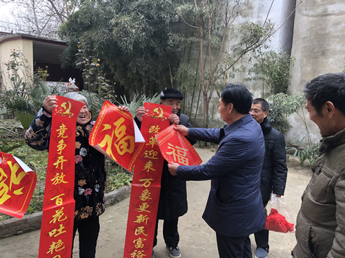 1月28日是農(nóng)歷的“小年”,在淮陽縣四通鎮(zhèn)時莊行政村,村黨支部訂制了歌頌黨的春聯(lián)免費發(fā)放給全村村民。村民們家家掛國旗,戶戶門前貼著歌頌黨的春聯(lián),黨的聲音傳遞到村里的每個角落,讓村民們紅紅火火迎新年。