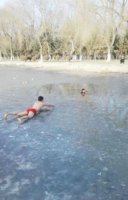 去年1月1日,甘肅省金昌市龍泉公園內(nèi)一名6歲男孩墜入湖中冰窟。在附近游玩的王保華見狀,毫不猶豫地脫掉厚重的冬衣,只剩一條紅褲頭,躬身走上了冰面。接近男孩時,他匍匐在冰面上,在同伴的幫助下,奮力把編好的藤條遞向在水中掙扎的男孩 。在其他愛心人士的共同幫助下,男孩最終獲救,而王保華與同伴悄悄離開了。事后,中央電視臺等媒體紛紛報道了此事,一時間,“紅褲頭”救人的事跡,在那個寒冷的冬天引起了強(qiáng)烈反響。