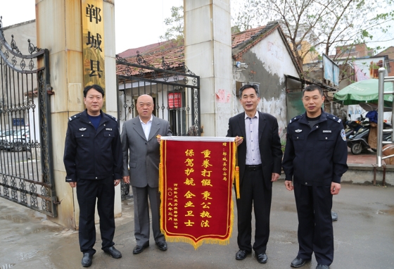 4月9日,南陽市市場監(jiān)督管理局和臥龍壓力容器有限公司一行4人專程來到鄲城,向鄲城警方表示誠摯的感謝,并將一面寫有“重拳打假秉公執(zhí)法 保駕護(hù)航 企業(yè)衛(wèi)士”的錦旗送到鄲城縣公安局食藥環(huán)大隊(duì)民警手中。