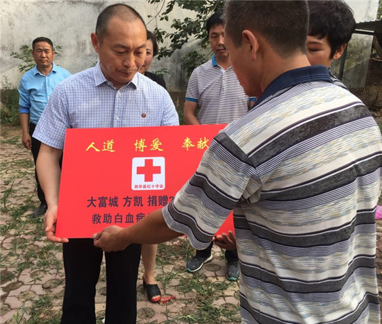西華縣副縣長(zhǎng)張翠霞、西華縣紅十字會(huì)秘書(shū)長(zhǎng)趙紅霞等人聞?dòng)嵹s來(lái),參加簡(jiǎn)短的捐款儀式,并代表縣政府和紅十字會(huì)對(duì)方凱的善舉表示感謝。
