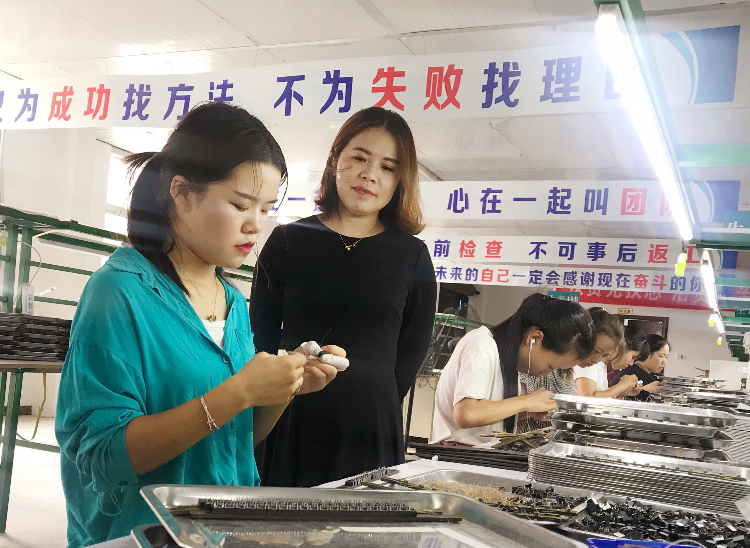 河南雙晨電子科技有限公司去年落戶西華縣大王莊鄉(xiāng)劉老家村后,生產(chǎn)線安裝繞線機、點焊機、包裝機等近50臺,產(chǎn)品廣泛用于液晶顯示屏、計算機、數(shù)碼相機、醫(yī)療設備、汽車等,目前已安置群眾就業(yè)50余人,其中貧困戶近20人,人月均收入3000多元,讓村民在家門口實現(xiàn)就業(yè)增收。圖為該公司總經(jīng)理在生產(chǎn)車間了解工人收入和家庭生活情況。
