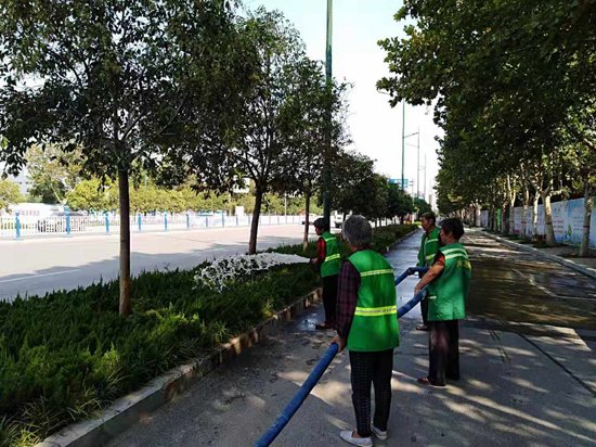 在國(guó)慶節(jié)即將到來(lái)之際,為打造整潔、文明、靚麗、和諧的城市環(huán)境,連日來(lái),市城管局在中心城區(qū)組織開展了以“扮靚城市,為國(guó)慶增光添彩”為主題的活動(dòng),營(yíng)造了良好的節(jié)日氛圍。圖為園林綠化工人在周口大道流沙河北段清洗綠化帶。記者 李一 攝