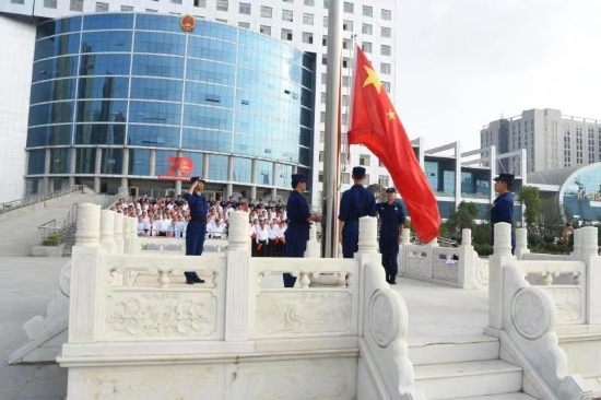 開發(fā)區(qū)黨委班子成員和大家一起齊聲高唱國歌,在清晨的曙光中,升起五星紅旗。