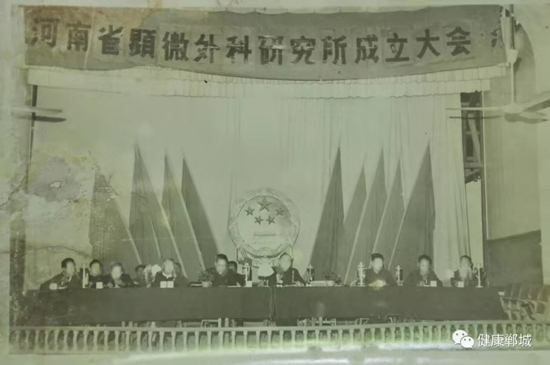 1983年河南省人民政府決定在鄲城縣建立河南省顯微外科研究所(圖為成立大會(huì))。1984年省衛(wèi)生廳撥款58.6萬元在醫(yī)院內(nèi)建設(shè)河南省顯微外科研究樓。
