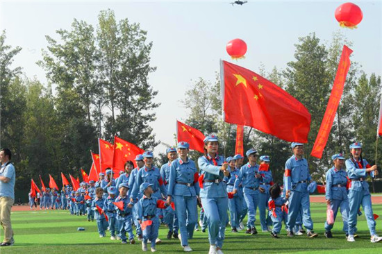 當(dāng)天上午,小朋友在家長(zhǎng)和老師的帶領(lǐng)下,身穿紅軍軍服,手里揮動(dòng)著小紅旗,鮮嫩的小臉蛋上貼著小國(guó)旗,雄赳赳氣昂昂地走在體育場(chǎng)上,邁著整齊堅(jiān)定的步伐,昂首挺胸,高唱國(guó)歌,共同祝福偉大的祖國(guó)70華誕。