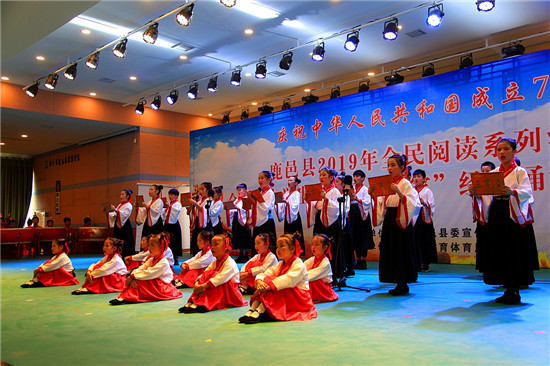 據(jù)了解,全民閱讀系列活動中的“經(jīng)典誦讀”活動是提高學(xué)生文化審美素養(yǎng)、促進學(xué)生健康成長的民心工程,宣傳文化部門和教育工作者要肩負起傳承經(jīng)典、發(fā)揚國粹、光大中華傳統(tǒng)文化的責(zé)任,讓國學(xué)精粹真正走進校園,走進課堂。讓傳統(tǒng)文化得以真正的繼承和發(fā)展,讓學(xué)生真正接受優(yōu)秀傳統(tǒng)文化的熏陶和啟迪。