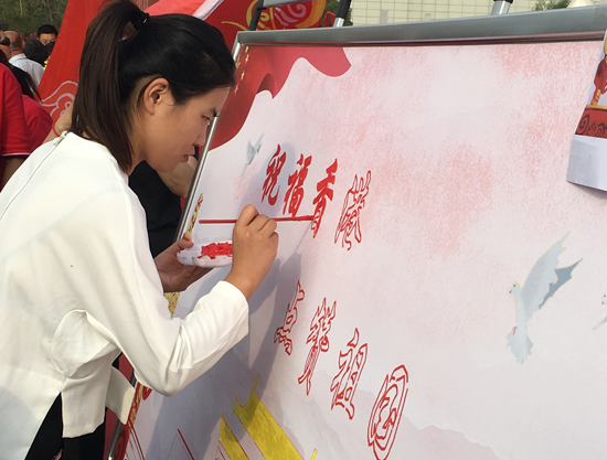 9月29日上午,來自我市各界的青聯(lián)委員及青年代表共同參與“祝福香港 點(diǎn)贊祖國(guó)”活動(dòng)?;顒?dòng)現(xiàn)場(chǎng),大家紛紛與國(guó)旗合影,并在簽名墻上寫下祝愿祖國(guó)的話語。