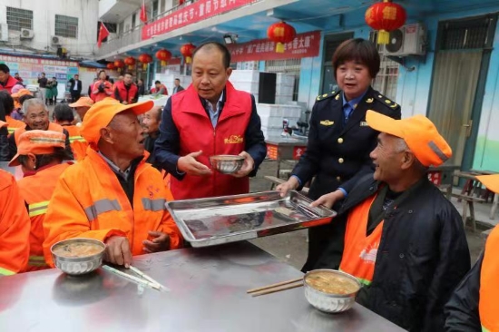 當(dāng)日凌晨5時(shí)許,太康縣愛心早餐點(diǎn)人頭攢動(dòng),熱鬧非凡,一輛裝滿新鮮蔬菜的大貨車停放在院中,20多名城管志愿者在太康縣城管局局長(zhǎng)張愛梅的帶領(lǐng)下正從車上往下卸蔬菜。聽說愛心企業(yè)要為環(huán)衛(wèi)工捐贈(zèng)蔬菜,太康縣委常委、統(tǒng)戰(zhàn)部長(zhǎng)張新棟也放棄節(jié)日休息,天不明趕到太康愛心早餐點(diǎn),加入到蔬菜裝卸行列?!肮?jié)日里,縣領(lǐng)導(dǎo)也不忘過來看望我們環(huán)衛(wèi)工,真讓人感動(dòng)啊?!笨粗鴱埿聴?、張愛梅等人忙前忙后卸蔬菜,臉上浸滿了汗珠,環(huán)衛(wèi)工張大爺?shù)热藙?dòng)情地說,“社會(huì)上有這么多好人關(guān)心我們環(huán)衛(wèi)工,我們?cè)倏嘣倮垡仓盗?”